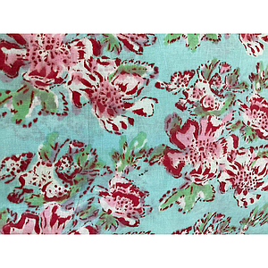 Voile de coton- fleurs roses fond turquoise clair - Inde