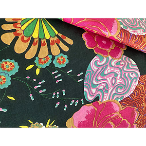 Voile de coton 100%- Bouquet multicolore fond noir - Inde