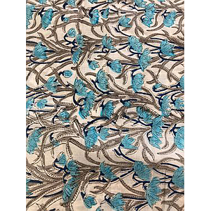 Voile de coton 100%- Fleurs bleues grises / fond blanc - Inde
