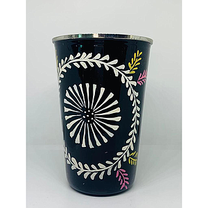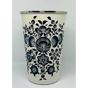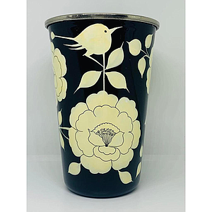 Gobelet inox (ref G14) Fond noir fleur/oiseau blanc- Inde