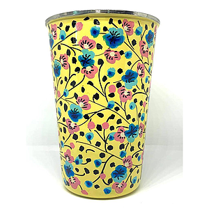 Gobelet inox (ref G2) jaune/ fleurs roses & bleues - Inde