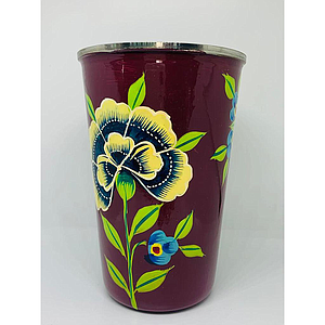 Gobelet inox (ref G4) Fond bordeaux grosse fleur - Inde