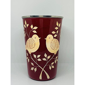 Gobelet inox (ref G5) Fond bordeaux oiseaux crême- Inde
