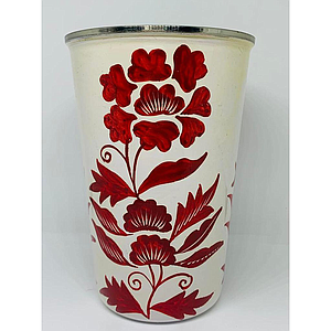Gobelet inox (ref G7) Fond crème fleurs rouges- Inde