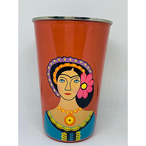 Gobelet inox (ref G8) - fond orange femme Inde