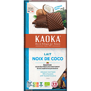 Tablette de chocolat au lait 40%et Noix de coco - Bio - Fair trade - Kaoka - 100g
