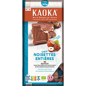 Tablette de chocolat au lait 40% Noisettes entières - Bio - Fair trade - Kaoka - 180g