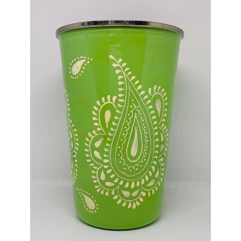 Gobelet inox (ref G10) - Fond vert pomme motif cashmere - Inde