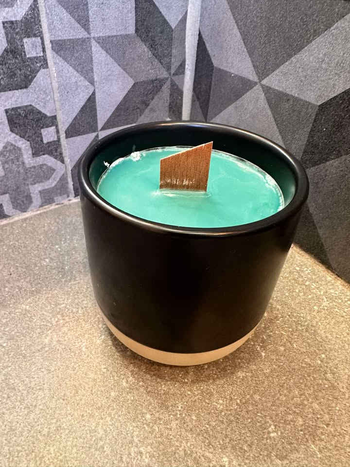 Bougie fragrance "Figue fraîche", pot grège-noir, céramique