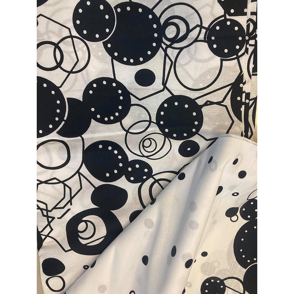 Tissus Wax - Ronds noirs fond blanc