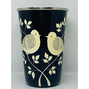 Gobelet inox (ref G17) Fond noir oiseau blanc - Inde