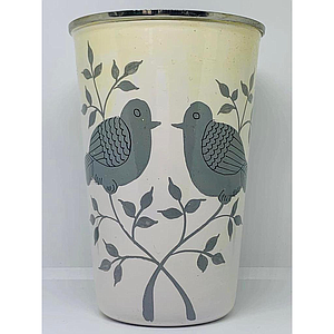 Gobelet inox (ref G18) - fond blanc, oiseaux gris- Inde
