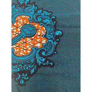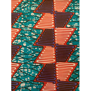 Tissus Wax - Losange saumon bleu blanc