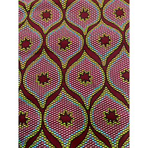 Tissus Wax - Losanges roses fond lie de vin