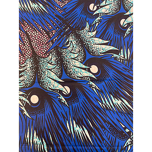 Tissus Wax - Plumes de paon bleu roi, ciel, parme