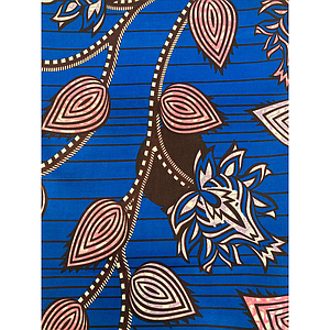 Tissus Wax - Motifs saumon bleu fond blanc
