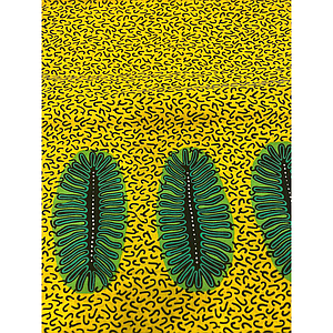 Tissus Wax - Plancton vert fond jaune