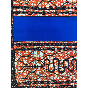 Tissus Wax - Bandes rouges motifs / bleu roi