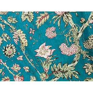 Voile de coton- fond vert canard fleurs roses