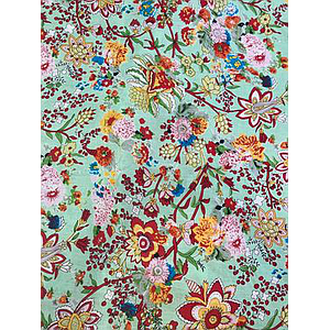 Voile de coton- fond vert pomme fleurs roses/rouges - Inde