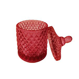 Pot pour bougie en verre rouge avec relief et couvercle (500ml)- Australie