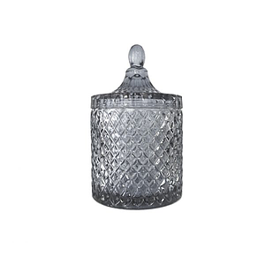 Pot pour bougie en verre "Smokey grey" avec relief et couvercle (500ml)- Australie
