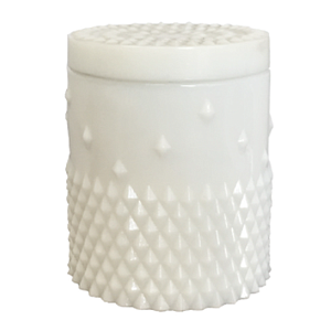 Pot pour bougie en verre blanc mat avec relief avec couvercle - Australie